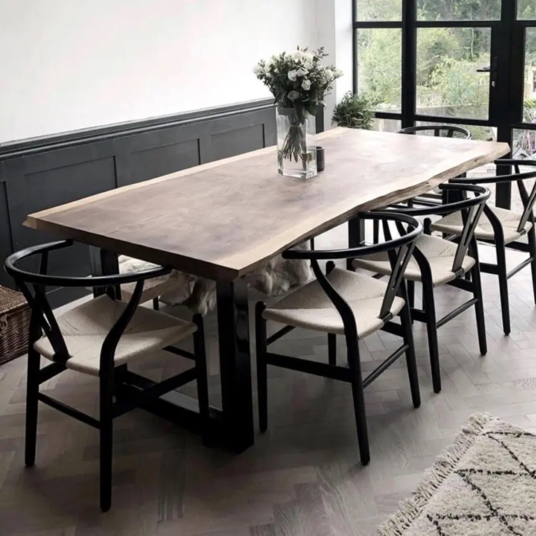 A szélezetlen tömörfa ebédlő asztal szinte bármilyen stílussal kombinálható. Használhatsz fa-, vagy bőrtámlás székeket, sőt, még a kárpitos székek is kiválóan mutatnak mellette! Ha igazán bátornak érzed magadt, keverheted a stílusokat, a székeket is.